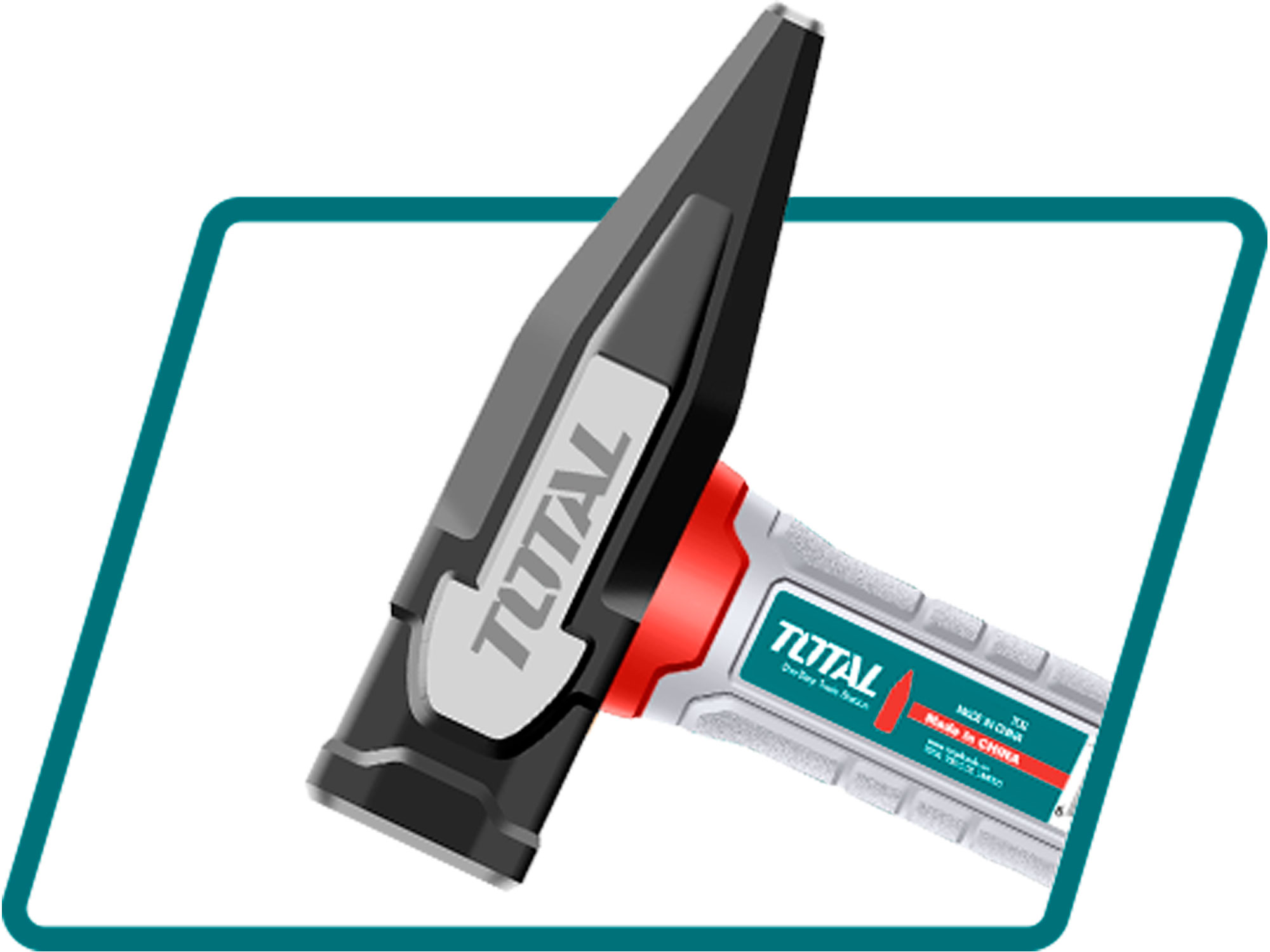 Geliştirilmiş dövme çekiç kafası. Isıl işlem görmüş, 45# karbon çeliği. Rahat bir tutuş için üç renkli fiberglastan yapılmış sağlam sap.