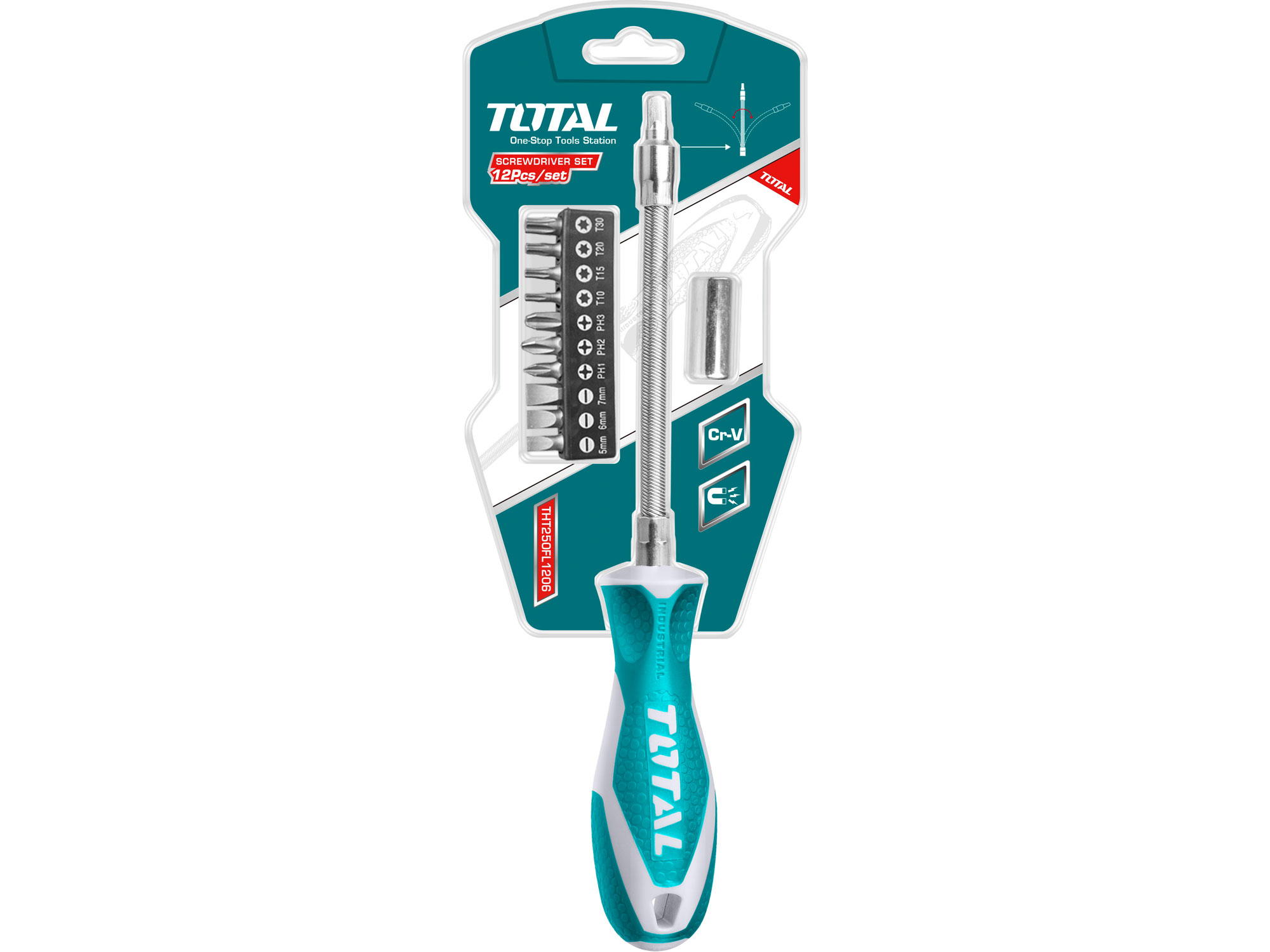 Esnek şaftlı ve uçlu tornavida, 12'li set, CrV
