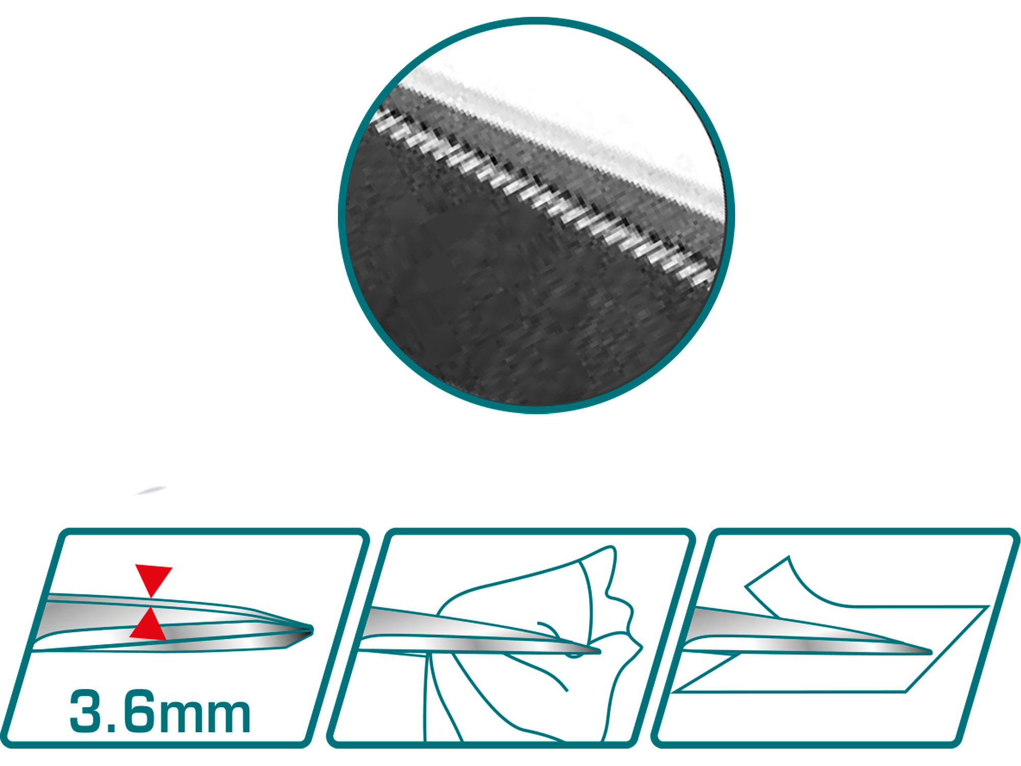Bu makas endüstri, ticaret veya üretim alanlarında kullanım için idealdir. Sağlam ve dayanıklıdır ve keskin, titanyum kaplamalı bıçağıyla en sert malzemeleri bile kolayca kesebilir. Tırtıklı alt bıçak kaymaz bir kesim sağlar ve kesme sırasında malzemenin kaymasını önler.