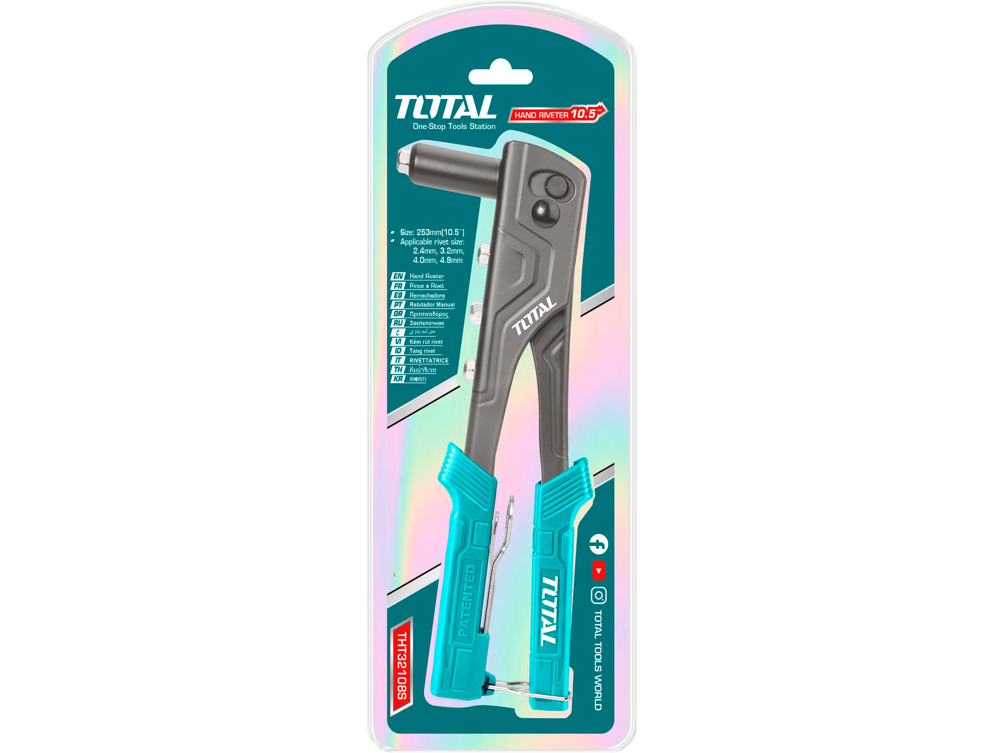 - 270 mm uzunluğuyla, sıkı oturan perçinleri bile fazla çaba harcamadan çıkarmak için iyi bir kaldıraç sunar. - Perçinleme pensesi, 2,4 mm, 3,2 mm, 4 mm ve 4,8 mm dahil olmak üzere çeşitli perçin boyutları için uygundur. - Çalışırken güvenli bir tutuş için kaymaz bir sapa sahiptir. - Pense, düzenli olarak perçinlerle çalışan tüccarlar ve kendin yap meraklıları için idealdir. - Hafif ve kompakt olması sayesinde mobil kullanım için idealdir. - Perçinleme pensesinin kullanımı kolaydır ve manuel perçinlemeye kıyasla zamandan ve emekten tasarruf sağlar. - Metal, plastik ve deri dahil olmak üzere çeşitli malzemeler için uygundur. Total - Perçinleme pensesi ile perçinlerinizi hassas ve verimli bir şekilde yerleştirebilir veya çıkarabilirsiniz. Üretici