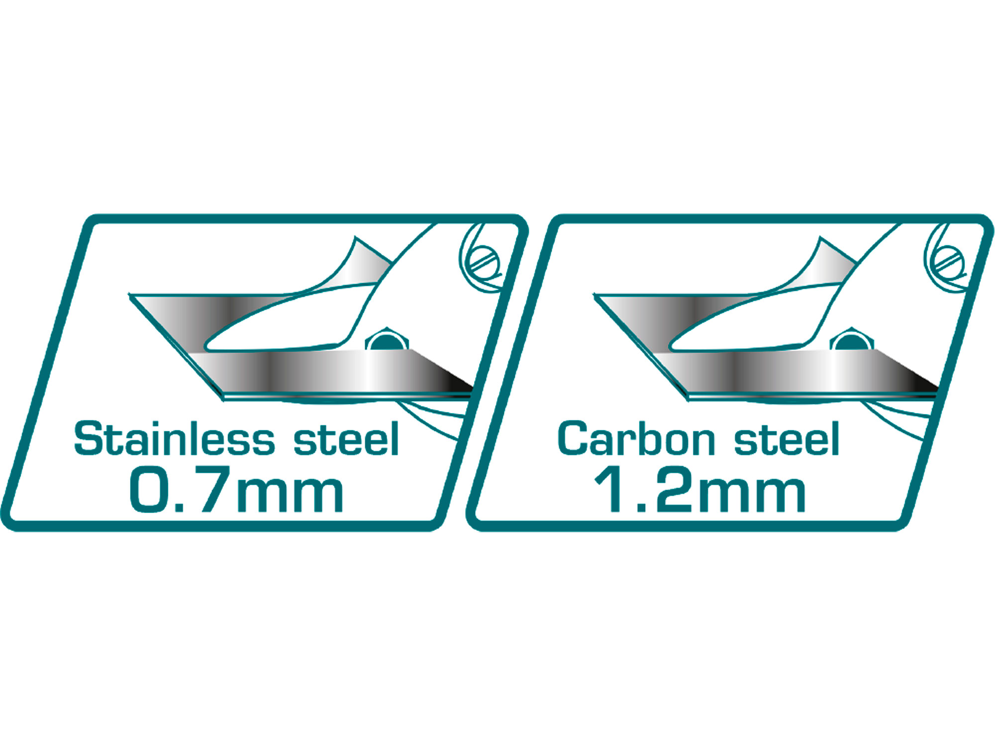Teneke makas dişlisi, sac kesmek için kullanılan özel bir alettir. Bu ürün, biri düz kesimler ve diğeri soldan kesimler için olmak üzere iki adet 250 mm uzunluğunda teneke makas dişlisi seti içerir.
