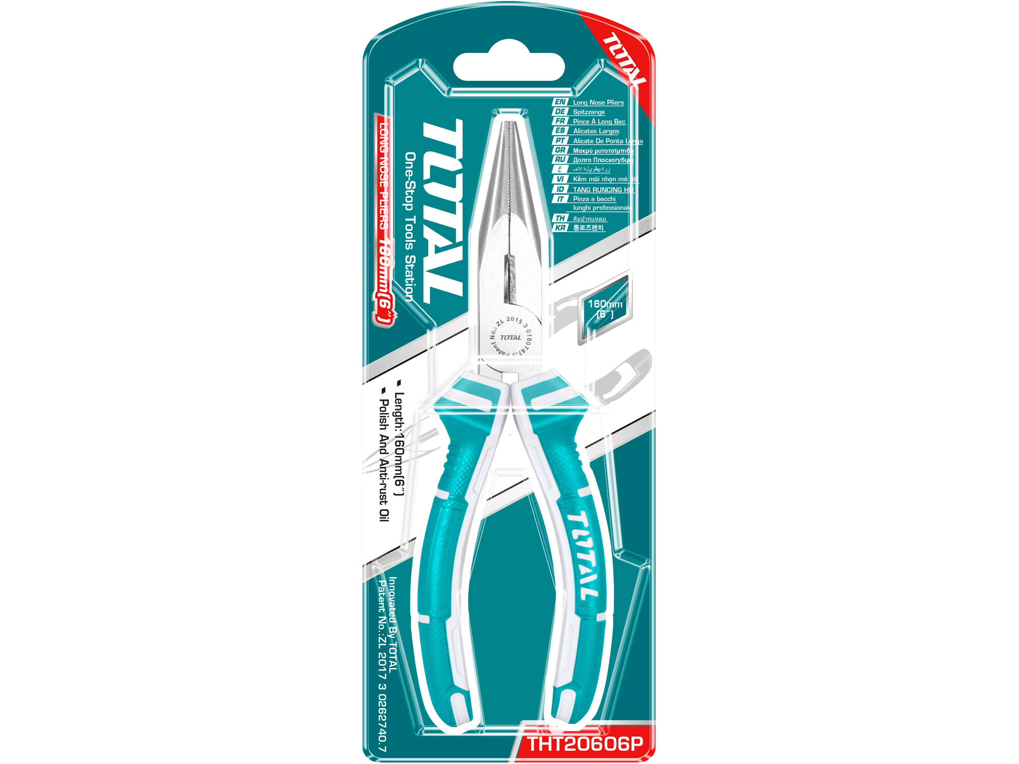 Total Yarım yuvarlak pense, düz, 160 mm, her DIY meraklısı ve profesyonel için vazgeçilmez bir araçtır. Sağlam tasarımları ve geniş uygulama yelpazeleri sayesinde hem atölyede hem de ev işlerinde kullanım için idealdir.