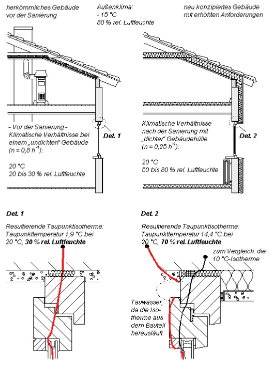 Bölüm 6'da belirtildiği gibi, bileşen sıcaklığı düşer ve ortam havası artık nemi ememezse, yoğuşma meydana gelecektir. Bu durumda 12,6 ºC'lik bir sıcaklığın kritik olduğu kanıtlanmıştır. Özel bir yazılım kullanılarak, bir bina bağlantısında yüzey sıcaklıkları belirlenir ve izotermal eğri olarak adlandırılan bir çizgi oluşturmak üzere birleştirilir.